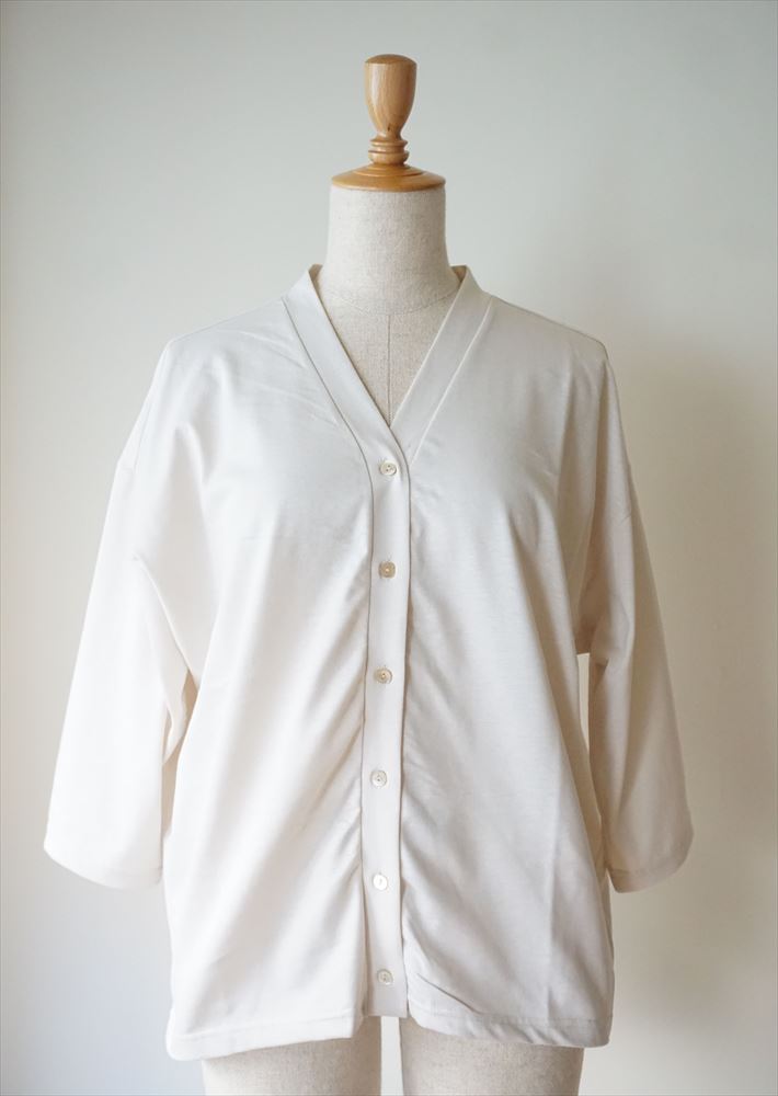 重ね着しやすい7分袖、両脇裾に小さなスリットが施され動きやすくシンプルな形とデザインで