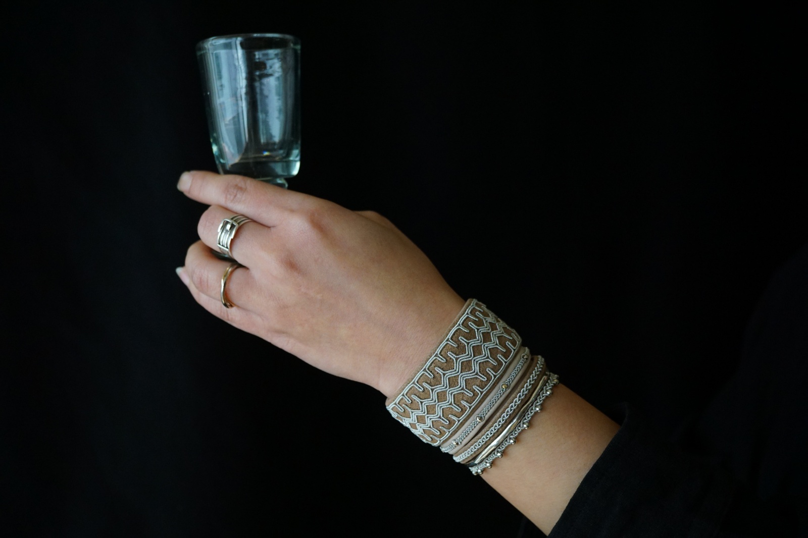 こちらは4年目くらいのsaami craftsのブレスレッドです。何でも合います。