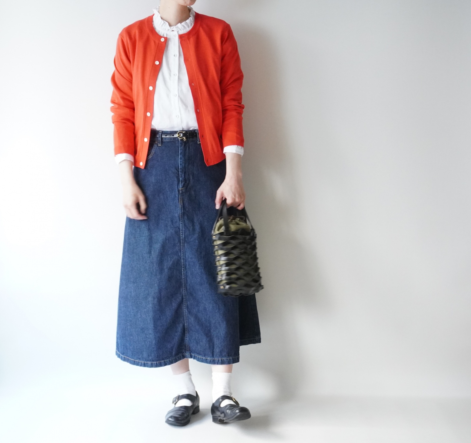 パンツスタイルが定番ですが、いつものボトムをデニムスカートに置き換えたら、