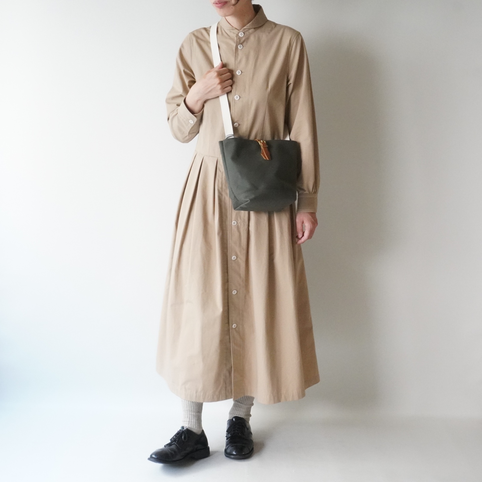 BUCKET SHOULDERは、お財布や携帯、本等がすっぽりと収まる丁度よい縦長サイズ。