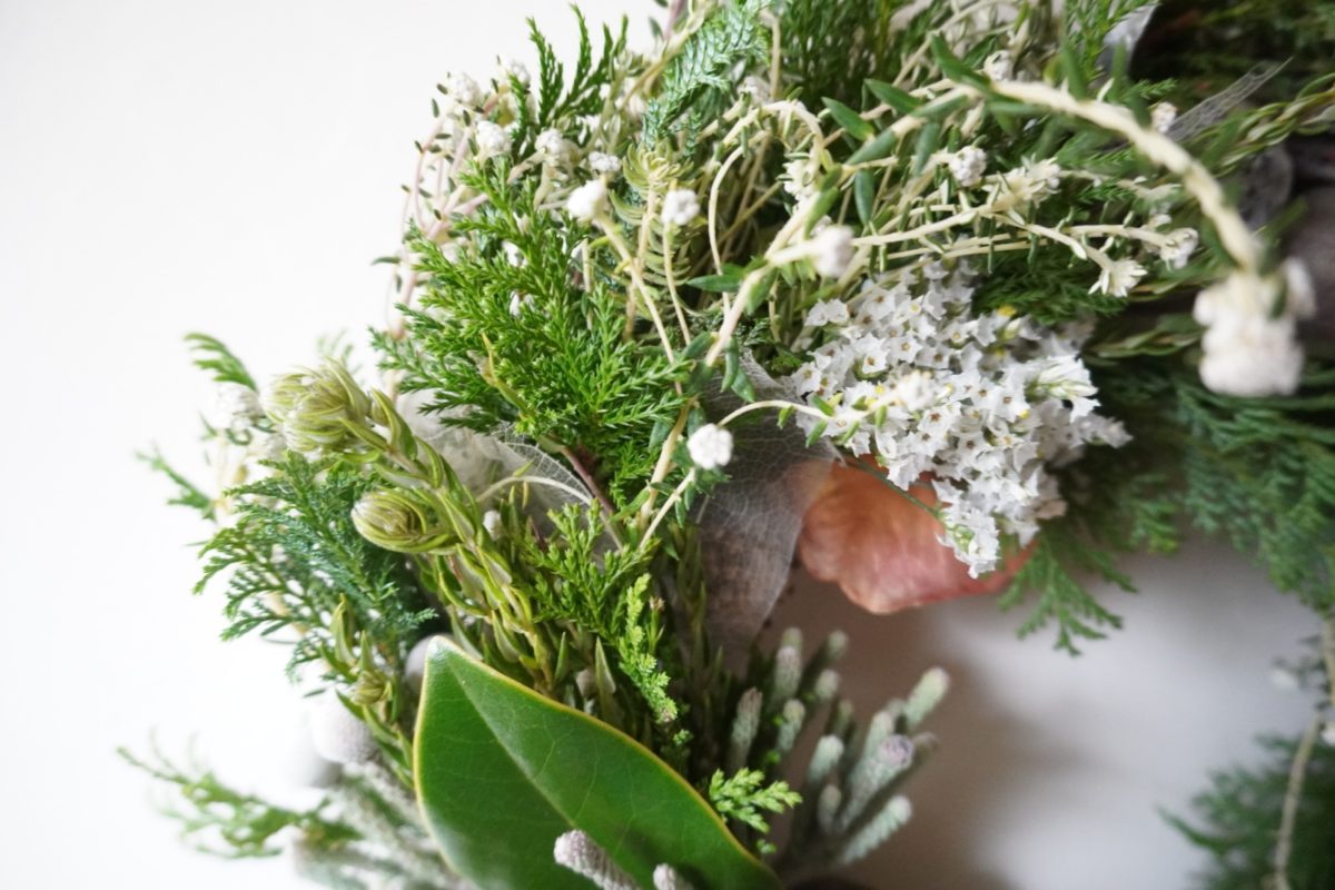 ユーカリを使いながら、自由な感性でつくるクリマスリース。