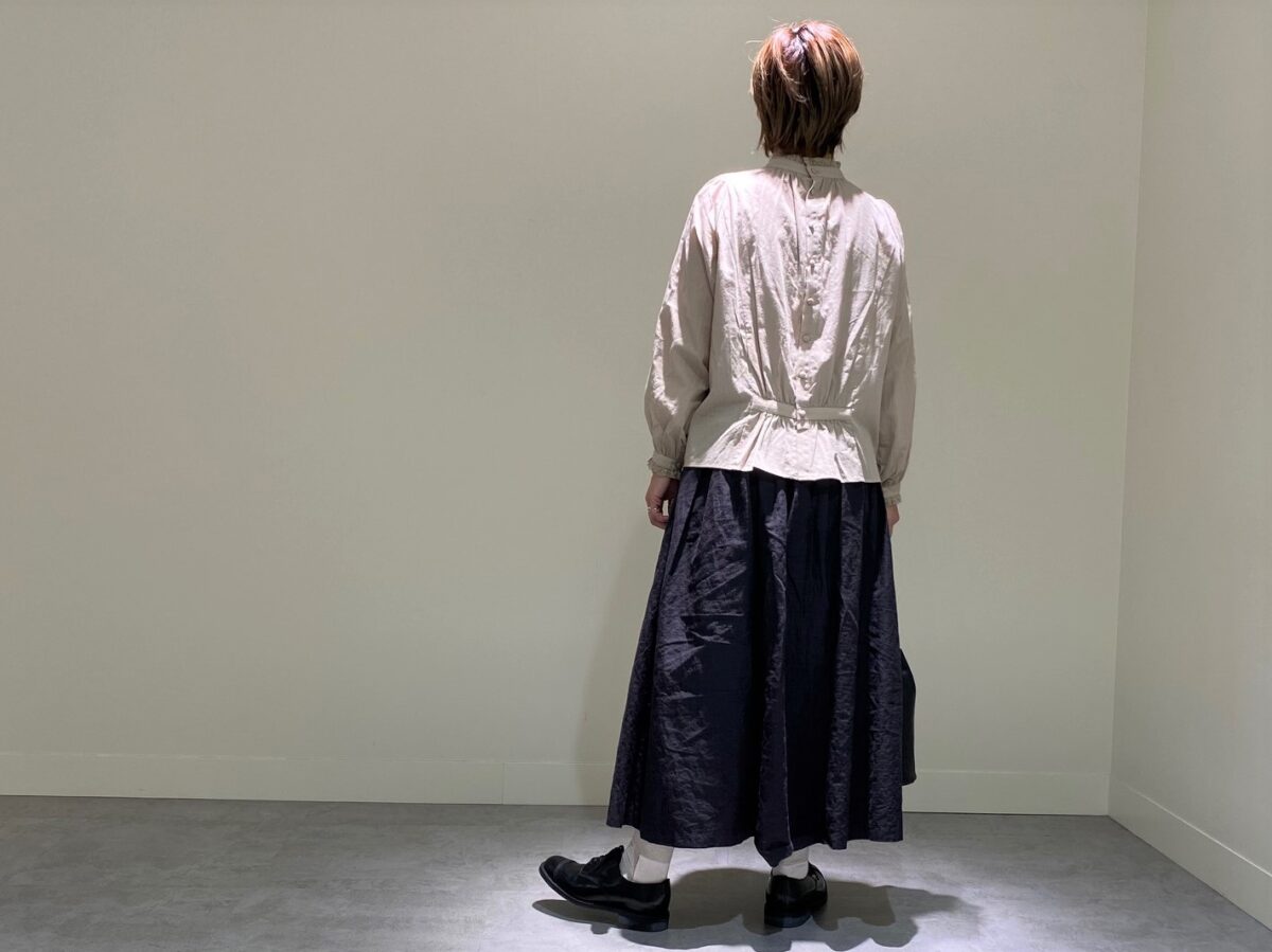 スカートやパンツにインにして着ていただくとよりお袖の雰囲気を引き立たせることができますよ。