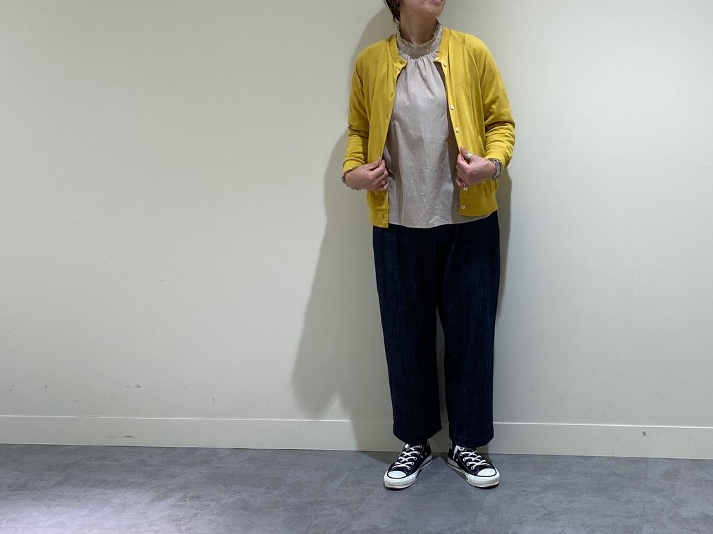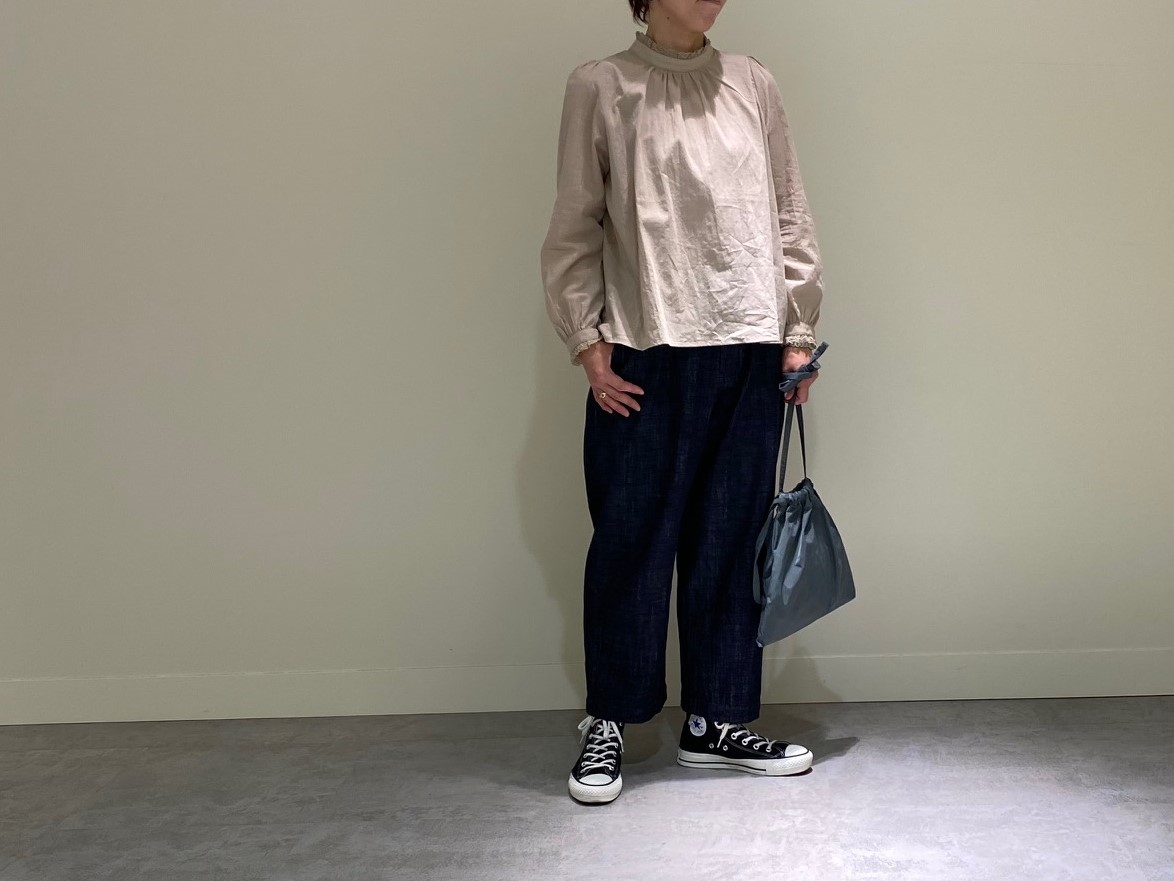 夏はTシャツに、秋が深まってきたらブラウスやタートル、これから入荷予定のデニムジャケットとの