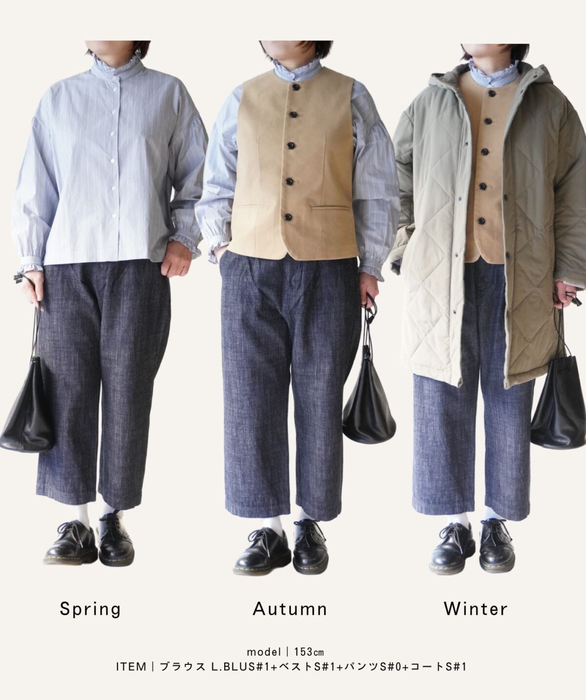 サイズ#1のブラウス中心に、ベストやパンツ、コートはサイズを選べるようにご用意しました。