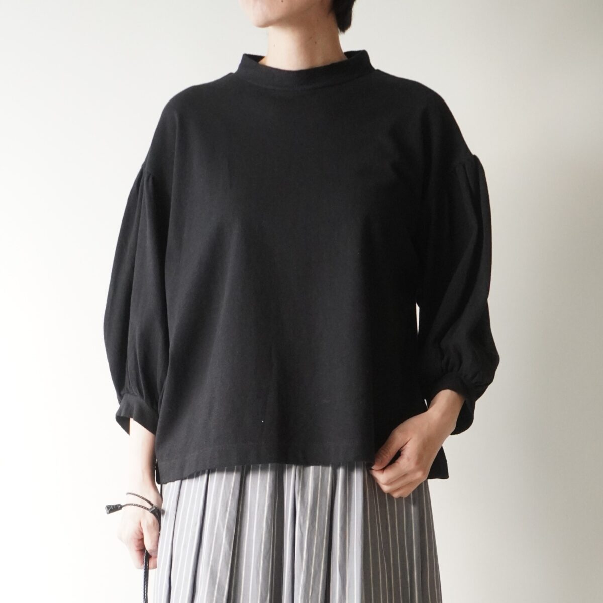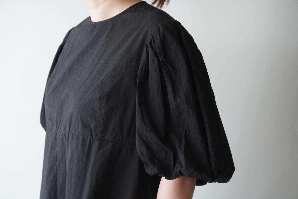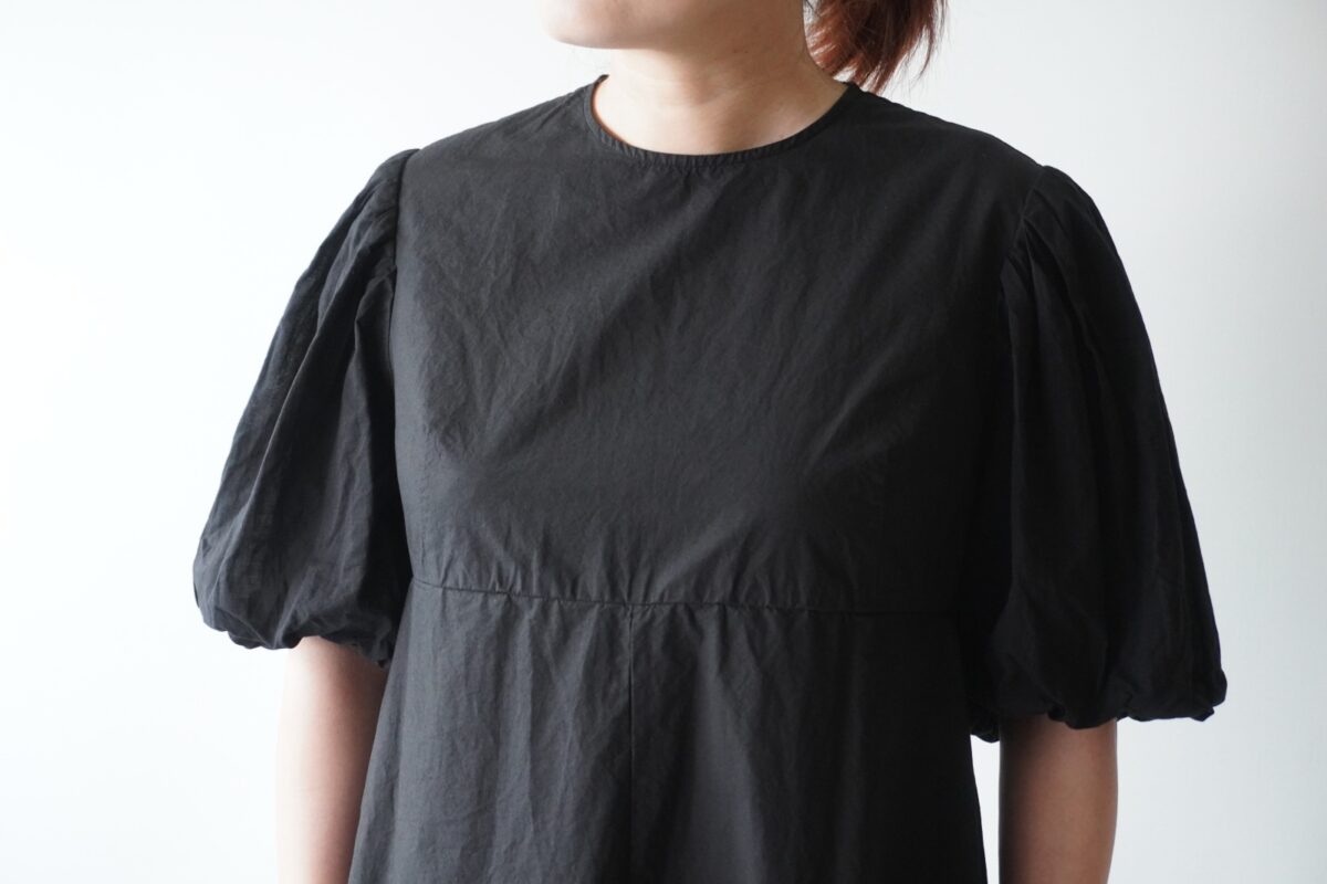 すっきりとしたラウンドネックに、ふっくらとしたバルーンスリーブ、