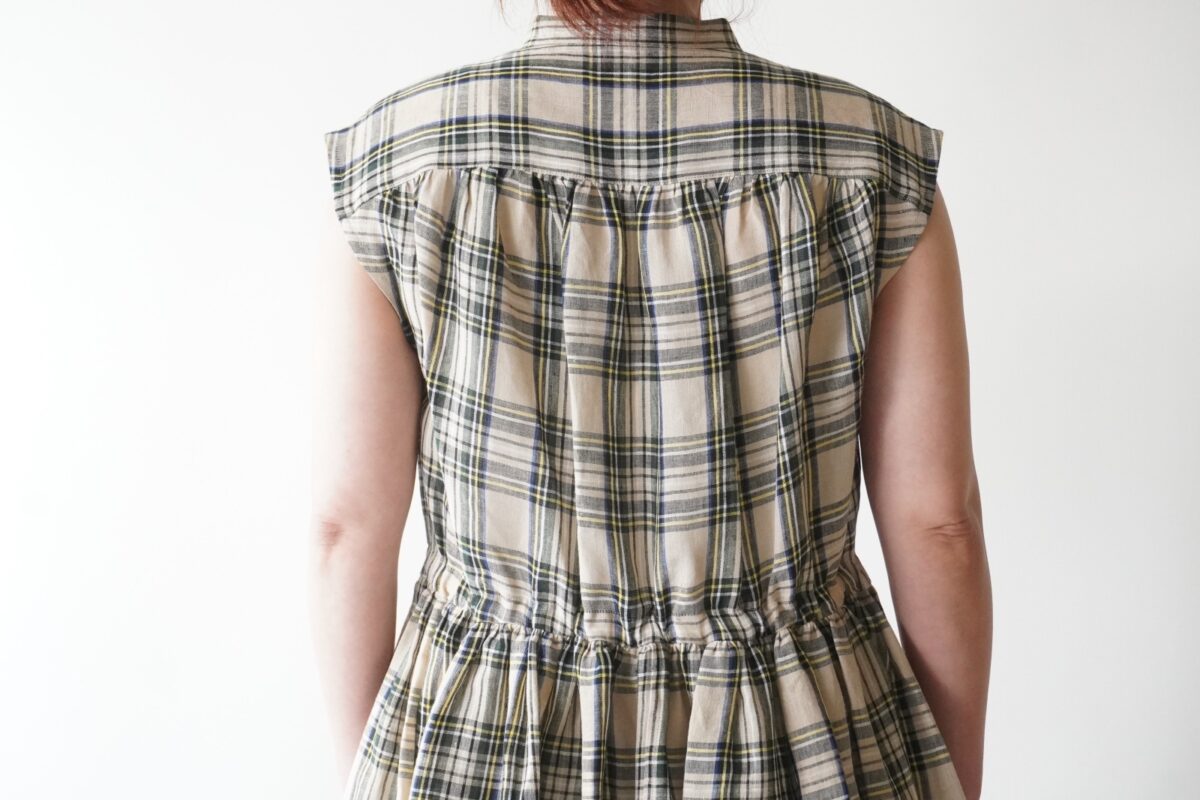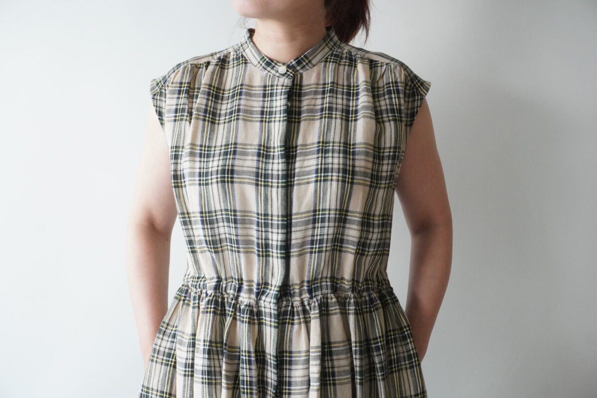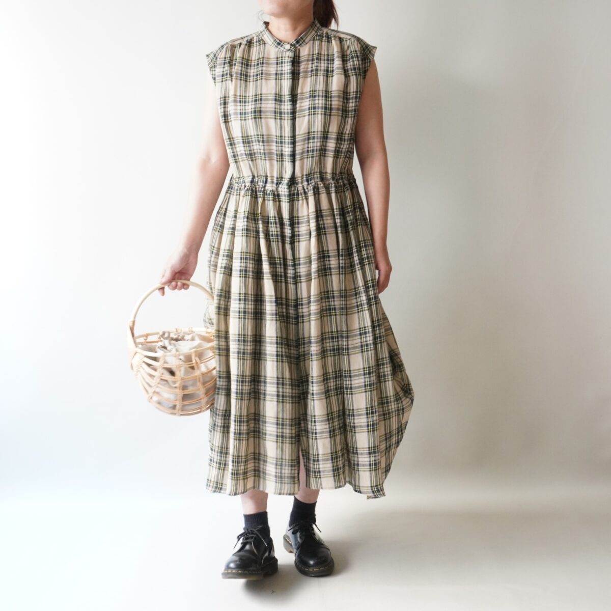 贅沢に使われたチェック柄が爽やかなノースリーブワンピース。