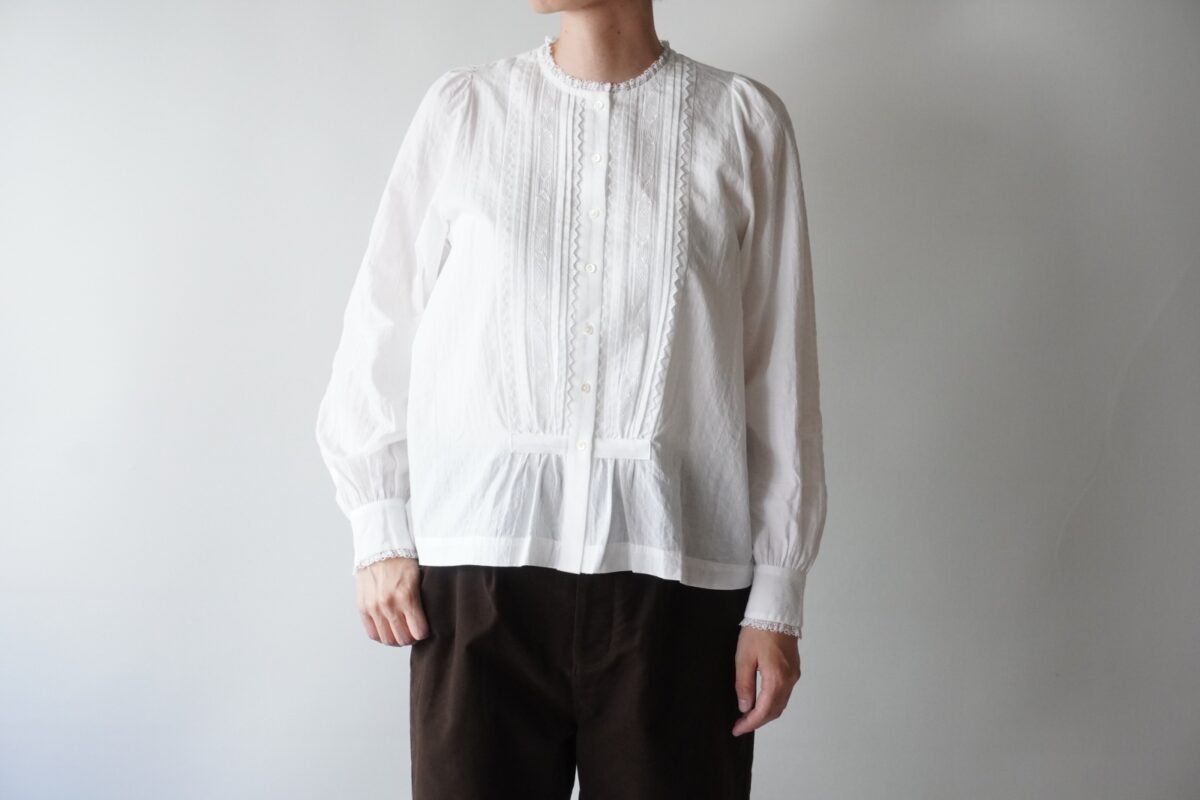 アンティークのブラウスのようなひとさじの女性さしさを感じるディテイールが魅力。