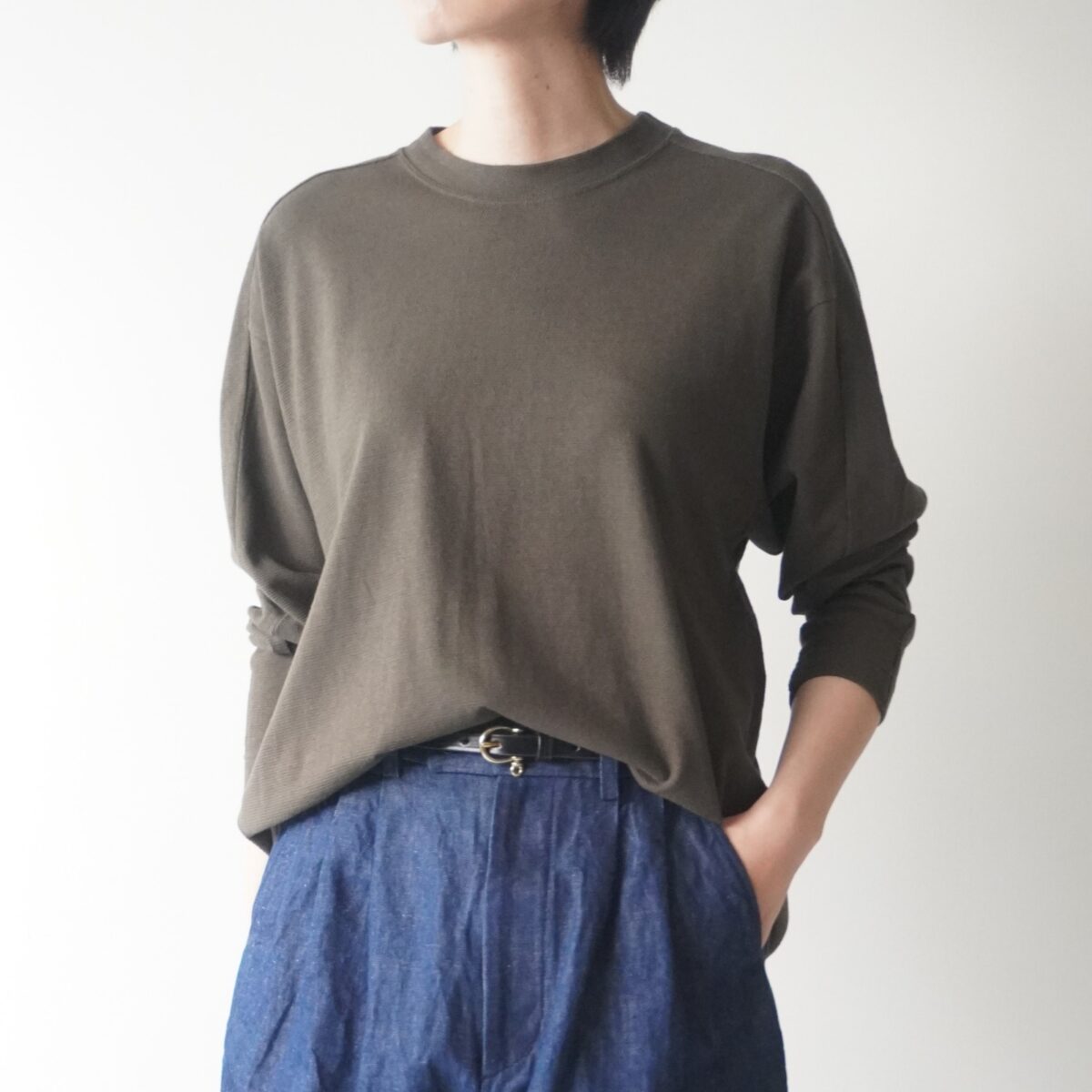 ラフ過ぎない品のあるTシャツは、一枚でもインナーでちらっと覗かせても素敵です。