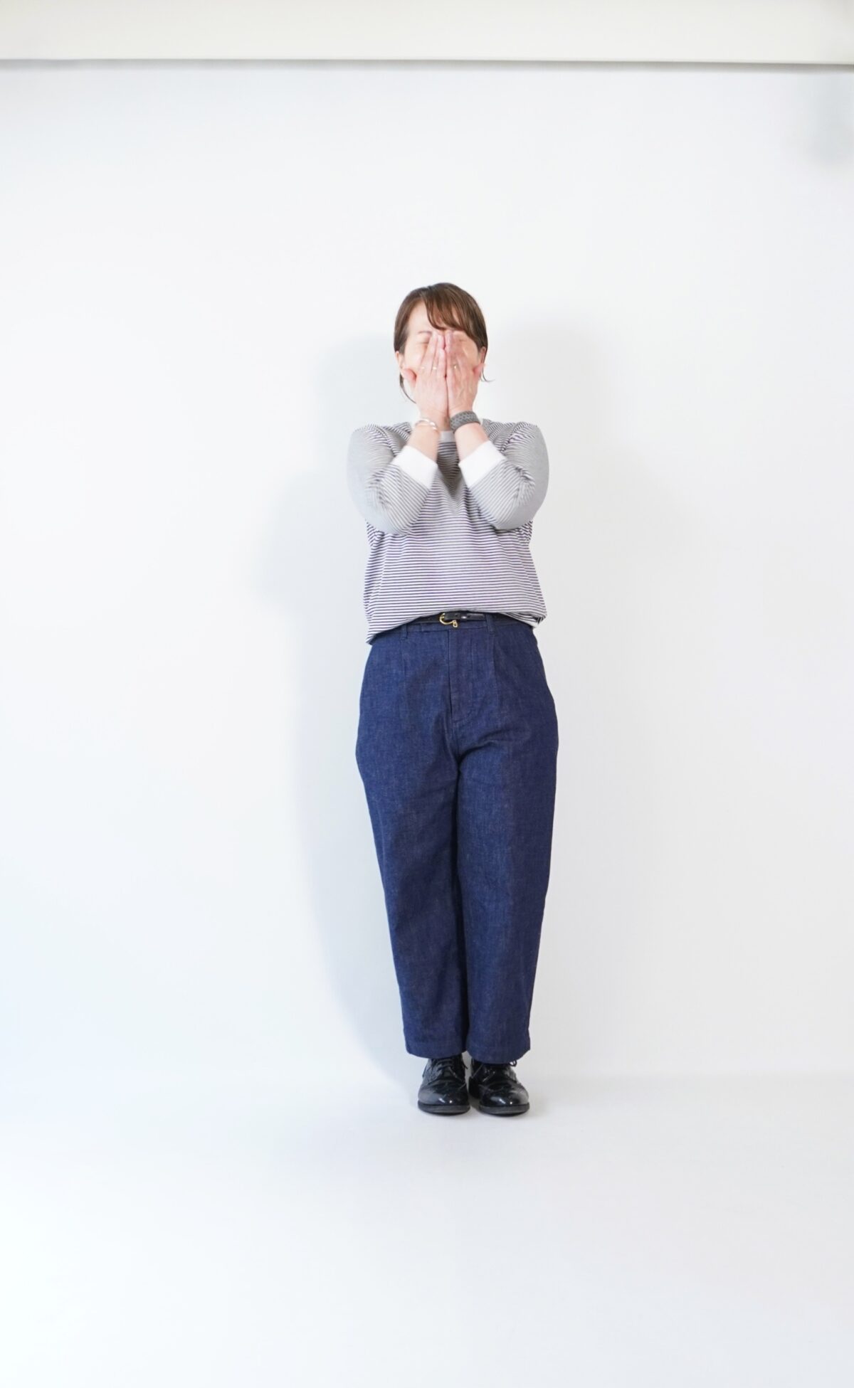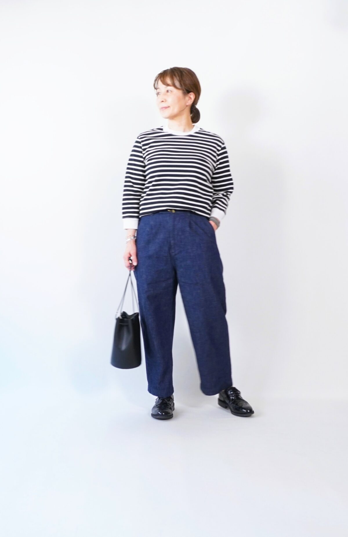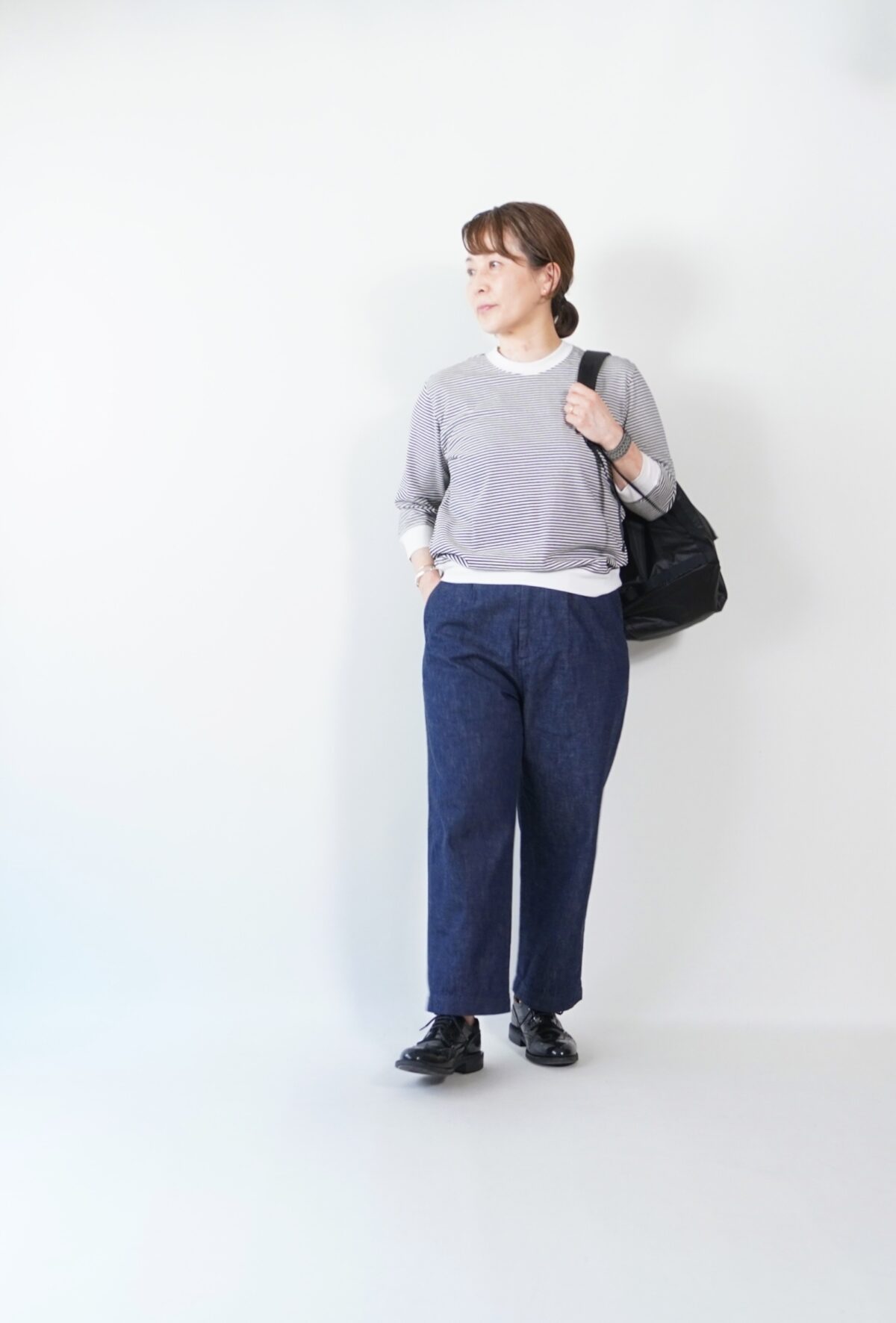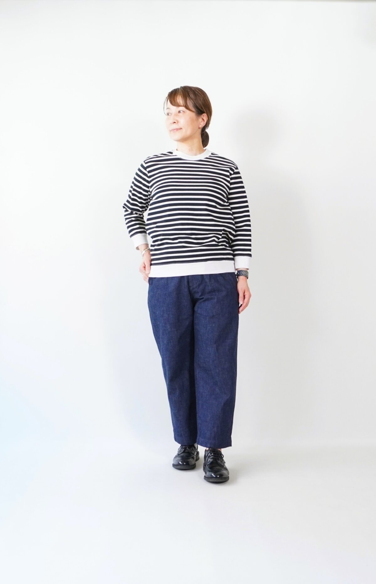 まずは太ボーダーのサイズ2をボトムインして着てみました。