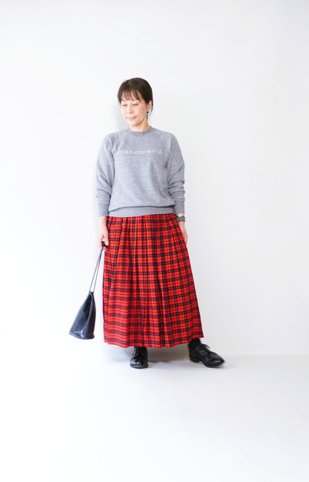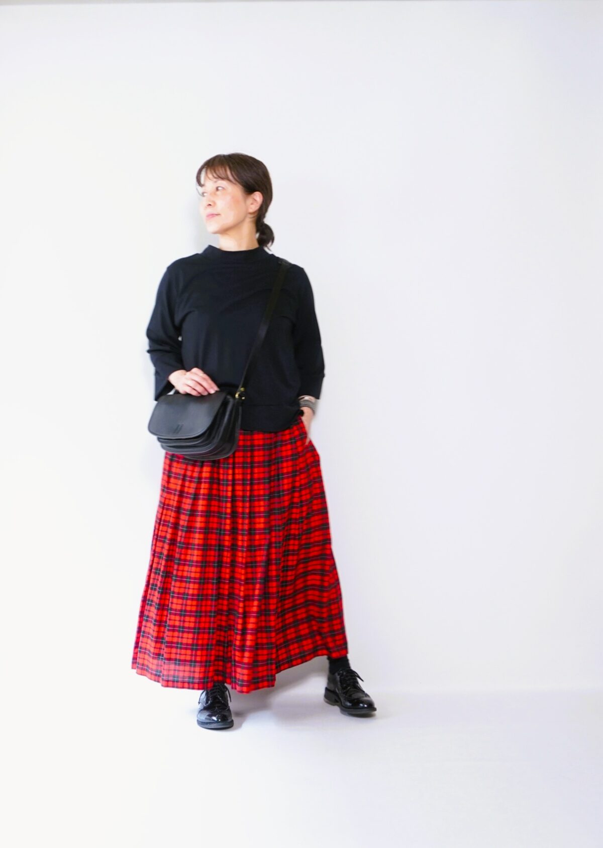 赤チェックにはやはりブラックが落ち着きます。