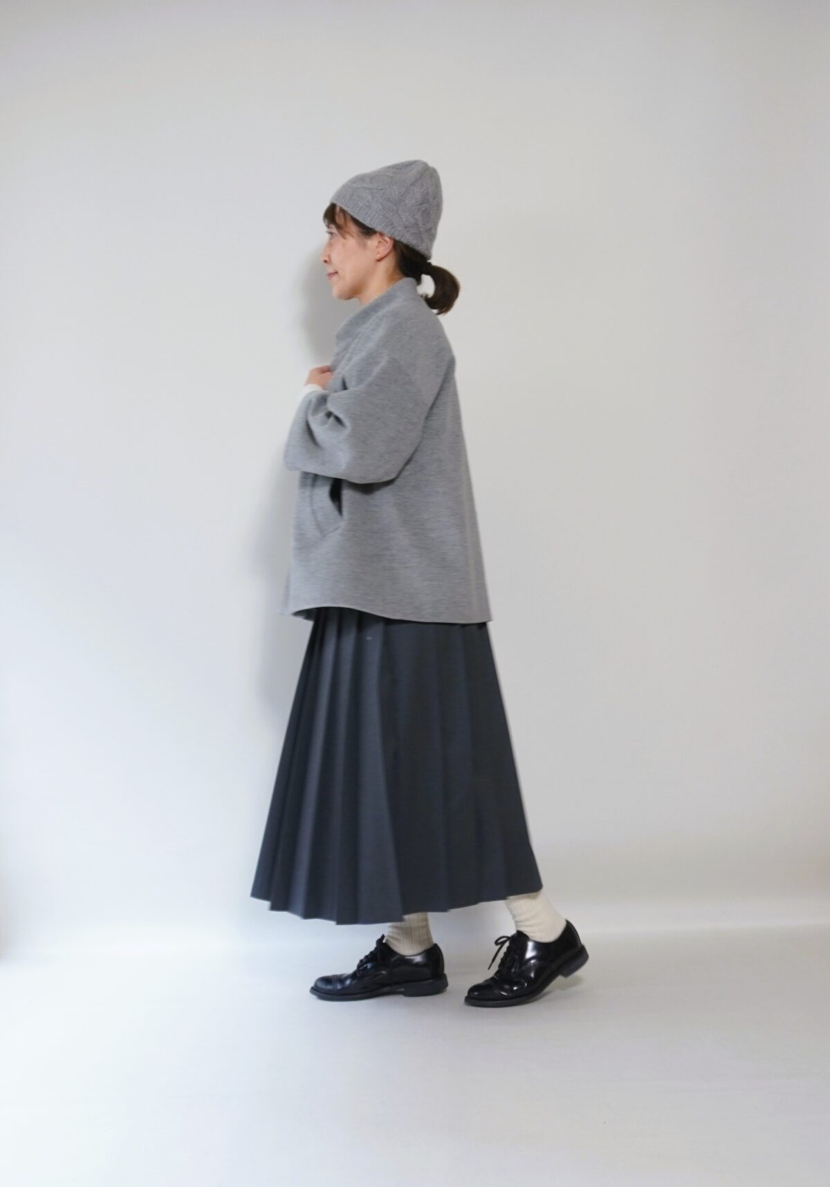 ボリュームを抑えつつ、歩くたびに揺れるシルエットが美しいスカート。