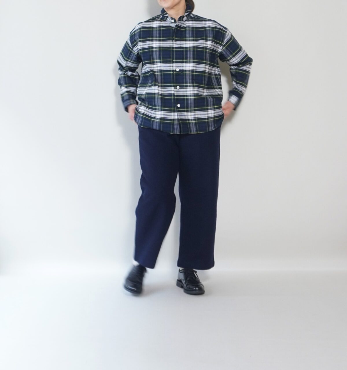 しっかりとしたチェックのコットンシャツとウールパンツで。