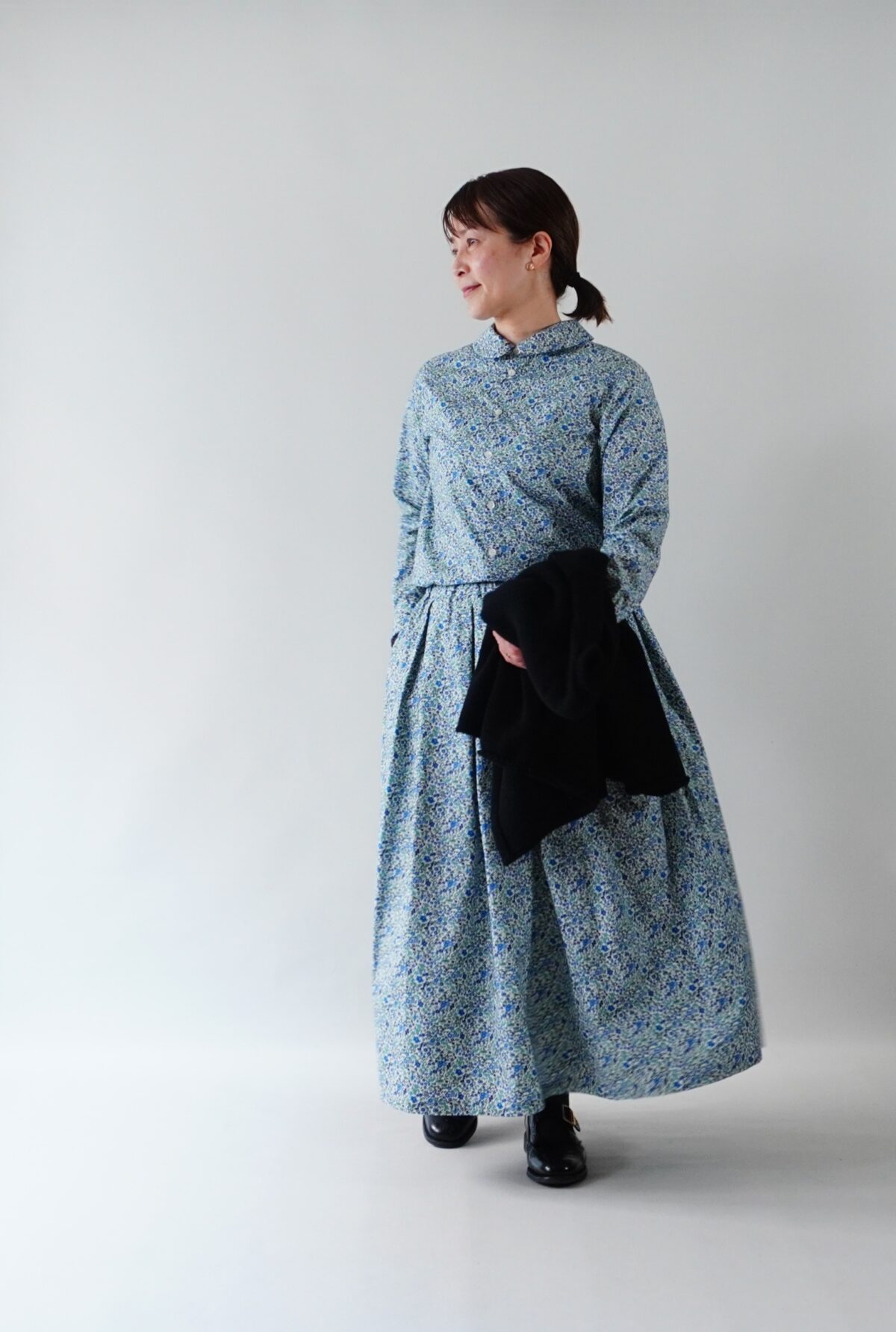 クラシカルな丸襟ですが台襟を付けた事で空間が生まれ、首回りをスッキリ見せてくれます。
