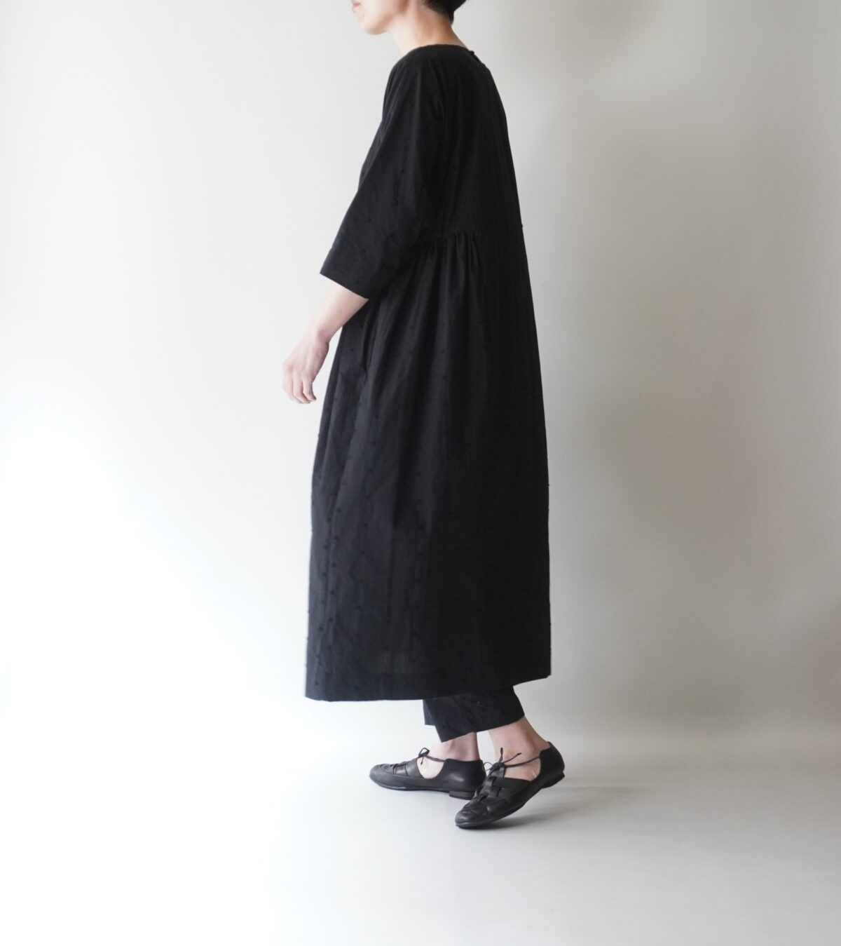 ふんわりシルエットで、軽やかな着心地、何より美しいドット刺繍が着こなしのポイントに。