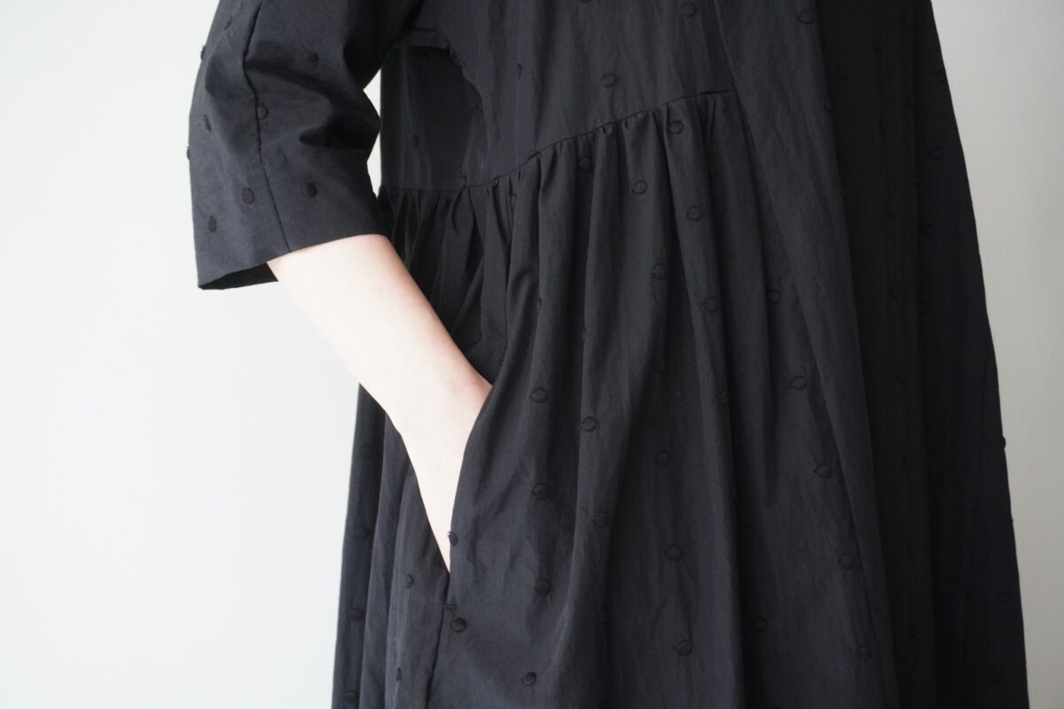 軽やかな雰囲気とドット刺繍が愛らしく、袖を通せば心浮き立つワンピース。