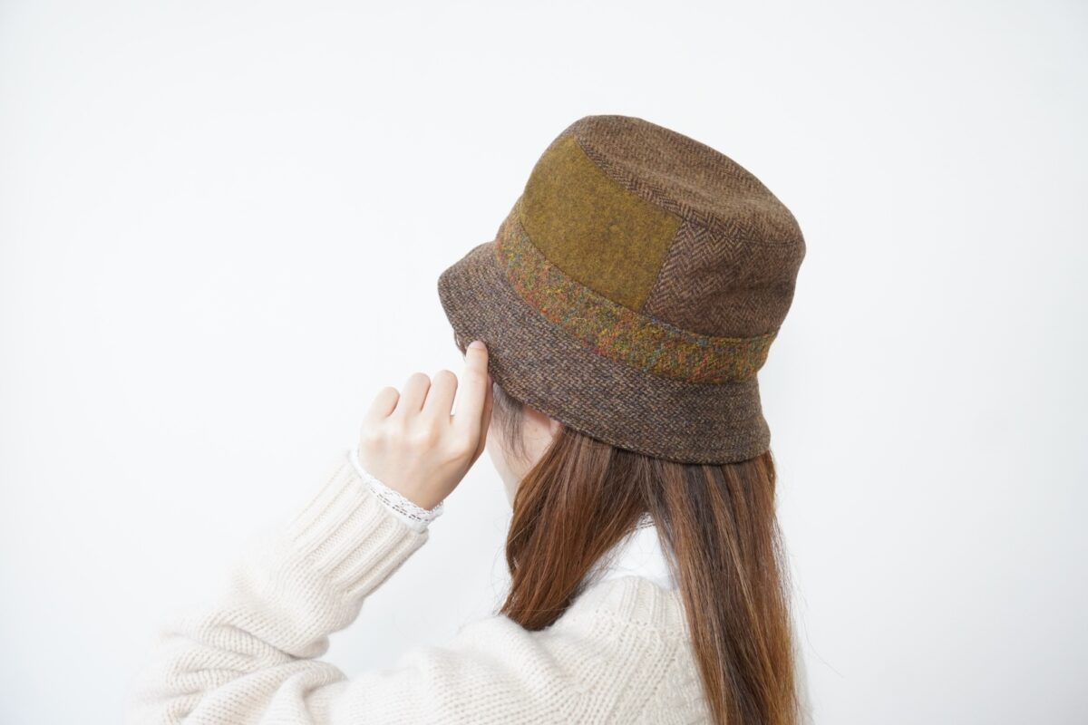 2種類のツイード生地を使用したパッチワークハット。