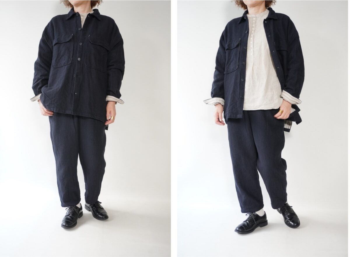 インナーに着ているのはインドの伝統的なスタイルをアレンジしたシャツ。