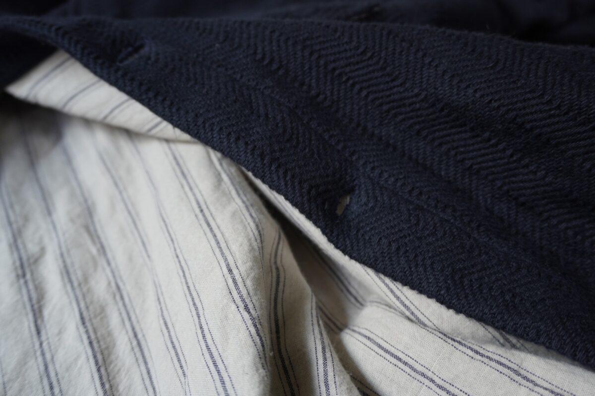 綿糸の手織りのヘリンボーン生地は他にないオリジナリティのある素材。