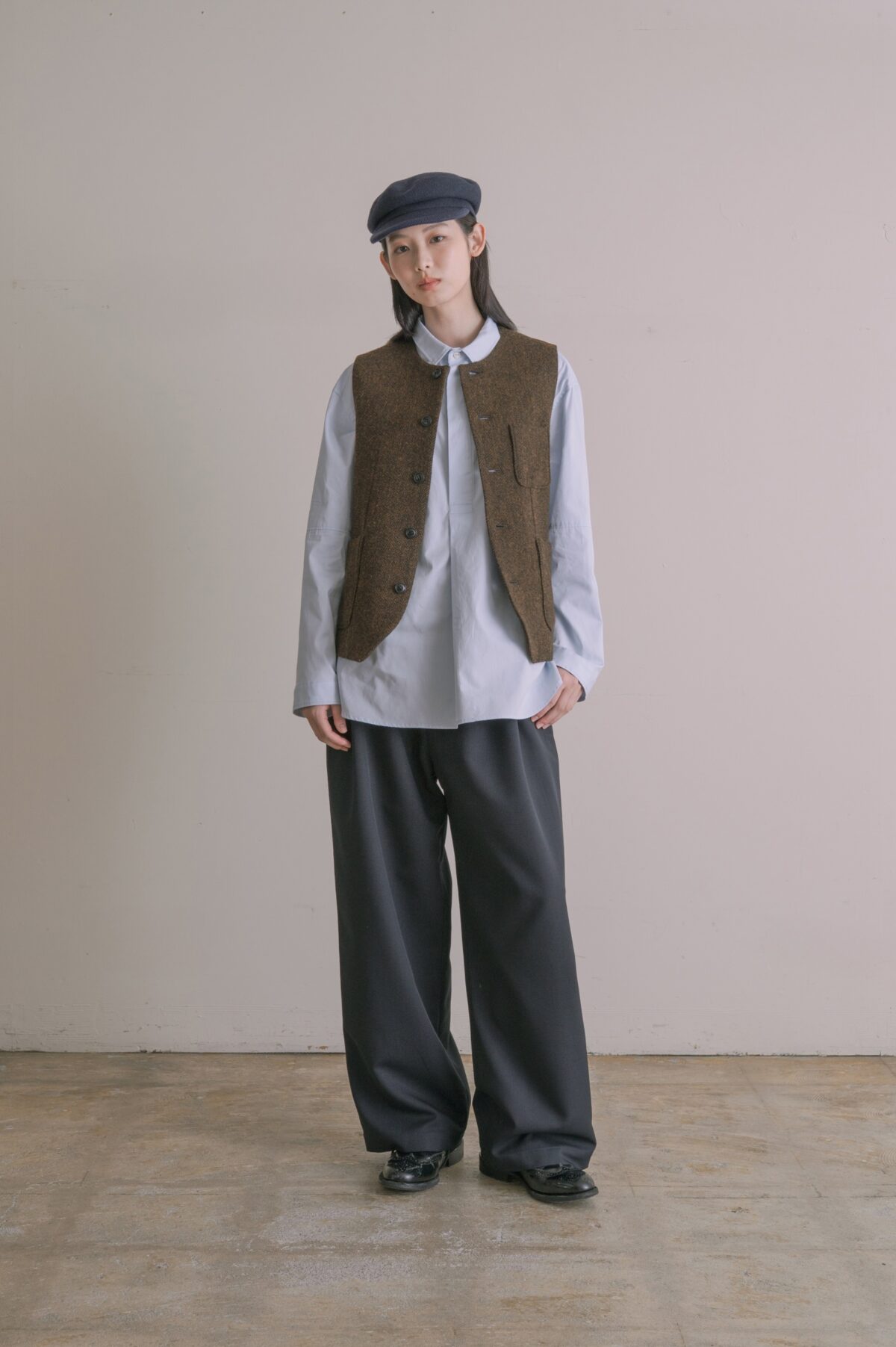 モデル着用パンツ:【A PIECE OF LIBRARY】ライクウーステッドロイヤルパンツ 22,000円